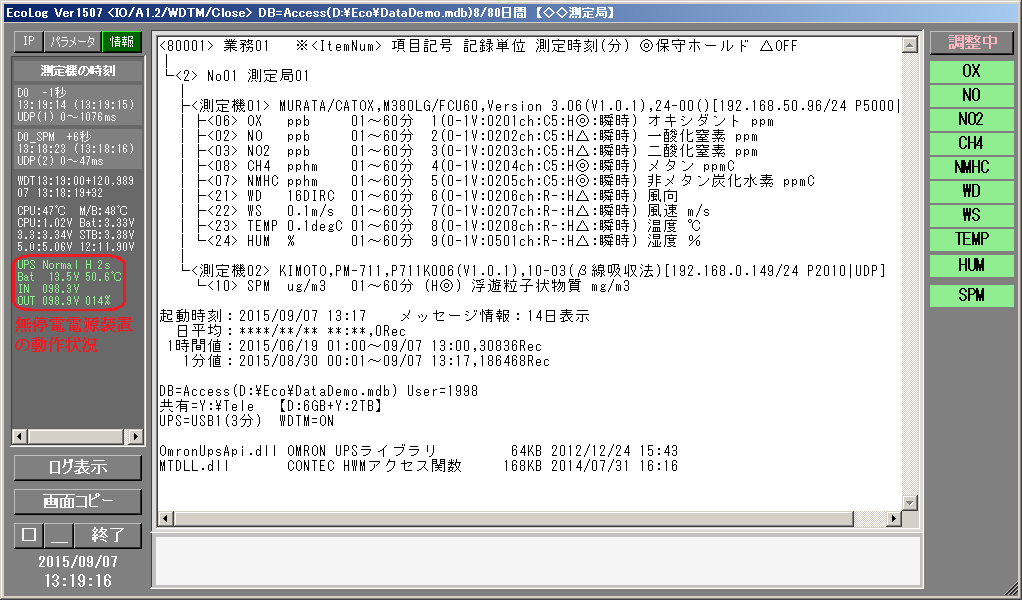 測定項目情報を表示(無停電電源装置の動作状況を表示)